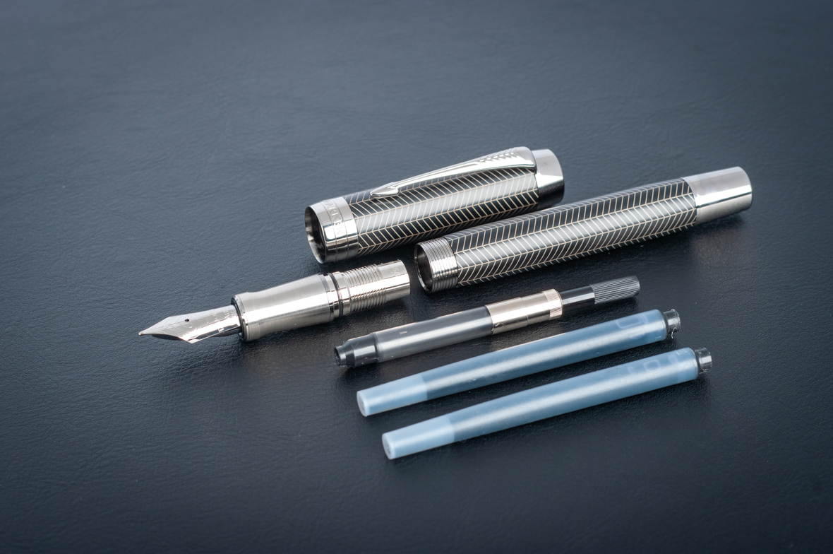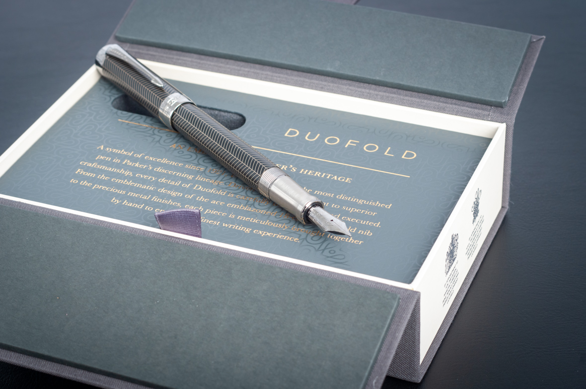 Перьевая ручка Parker Duofold Prestige Centennial Black Chevron CT от официального дилера Parker в Новокузнецке. Вы можете дополнительно заказать гравировку, которая подчеркнет Вашу оригинальность и придаст памятность статусному подарку. Все ручки Паркер поставляются в фирменном футляре.