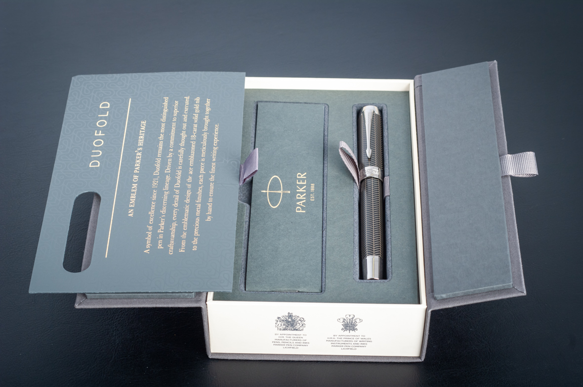Ручка роллер Parker Duofold Prestige Centennial Black Chevron CT от официального дилера Parker в Новокузнецке. Вы можете дополнительно заказать гравировку, которая подчеркнет Вашу оригинальность и придаст памятность статусному подарку. Все ручки Паркер поставляются в фирменном футляре.